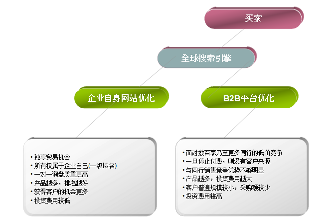 那么好的解决方案—通过对企业自身网站的优化推广,将买家从搜索引擎带入企业网站上来。