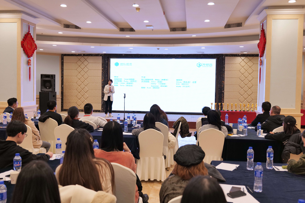 大会现场,易商副总裁黄海华女士也带来了精彩的分享,主题依然围绕着“聚力智变 行稳致远”主题,表示易商取得的成绩与每一位易商人的努力密不可分,希望全体员工能够发挥主人翁精神,在各自的岗位上发光发亮,与易商同心同行,共创辉煌。