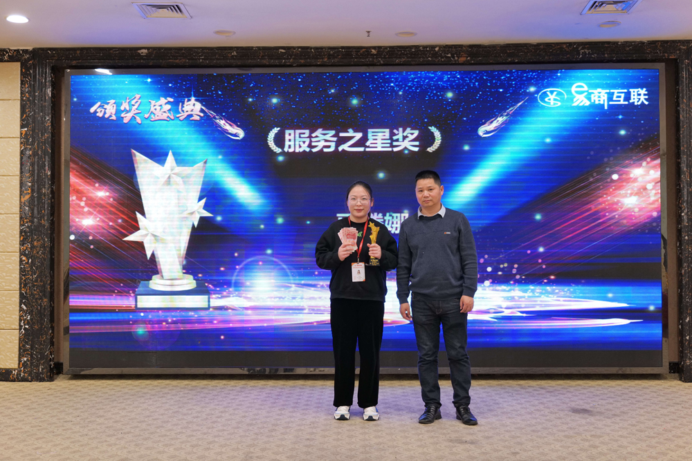 易商为2021年度优秀员工进行表彰,新秀奖、最具潜力奖、服务之星奖、业绩突出奖、优秀管理奖、敬业奖、突出贡献奖、功勋卓越奖 逐一揭晓,每一份奖项都是对他们过去工作的肯定,每一位获奖者都代表着易商的未来,希望他们坚守在岗位上继续为客户带来更优质的服务。