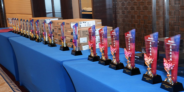 我们将向外贸云优秀合作伙伴们颁发奖杯与奖品,比如苹果笔记本、华为笔记本等等,以表彰他们在业务合作中取得的卓越成绩和突出贡献。希望他们与总部紧密合作,共同努力,再创佳绩。